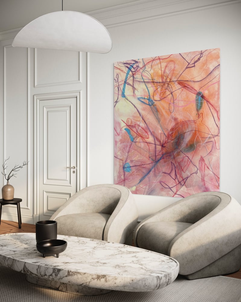Malt på 4 cm dyp blikdramme. Klar til å henges på veggen.